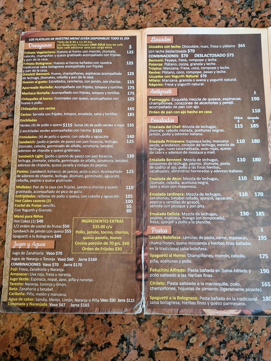 Located in the heart of Iguala de la Independencia, Bennoni is a culinary gem that embraces both warmth and authenticity. The moment you step into Bennoni, the beautiful ambiance and inviting atmosphere make you feel right at home, whether you choose to dine inside or enjoy the charming outdoor seating. It’s clear from the attentive service that the staff genuinely care, adding a personal touch that elevates the entire dining experience.
